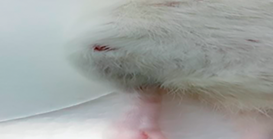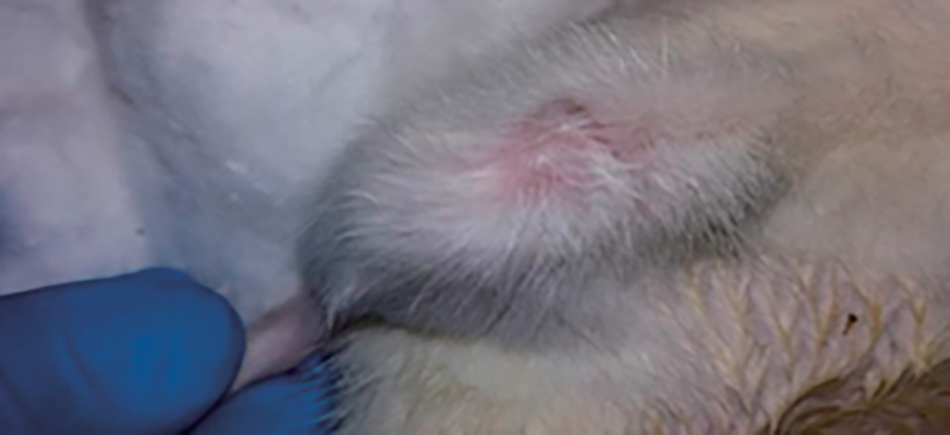 Fig. 2. Local inflammation, erythma on (OA) rat knee joint post (14) days post papain injection.