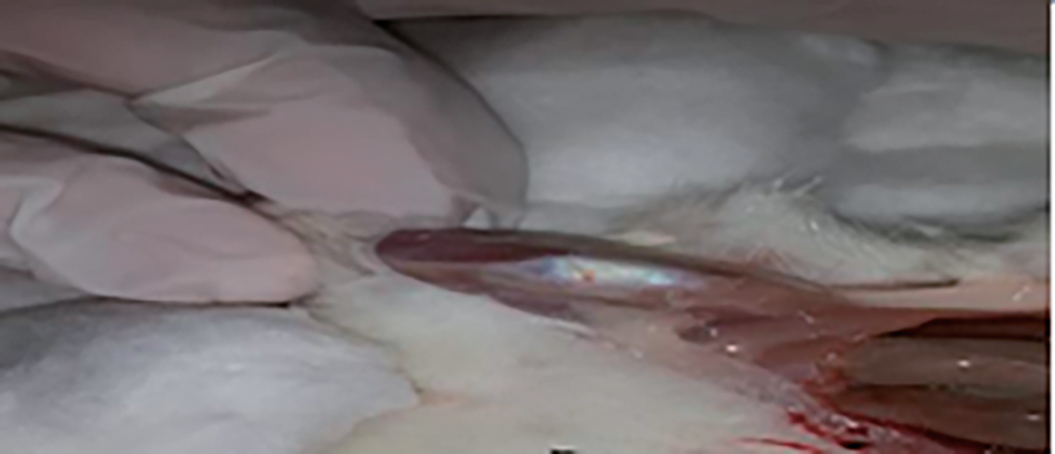 Fig. 3. Redness at articular cartilage region, severe inflammation and swollen post (28) days of papain injection at the knee joint.